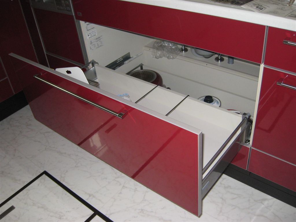 | 引出裏側のレバーを押せば引出が外せる | 引出を外して前準備完了 |