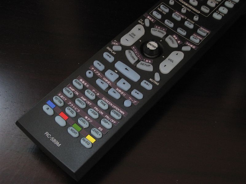 下の写真は、手を加える前の状態。AVアンプ付属の製品なのだから当たり前であるが、下部にある16個のボタンは、そのままではBDレコーダー用としては殆ど使えない。