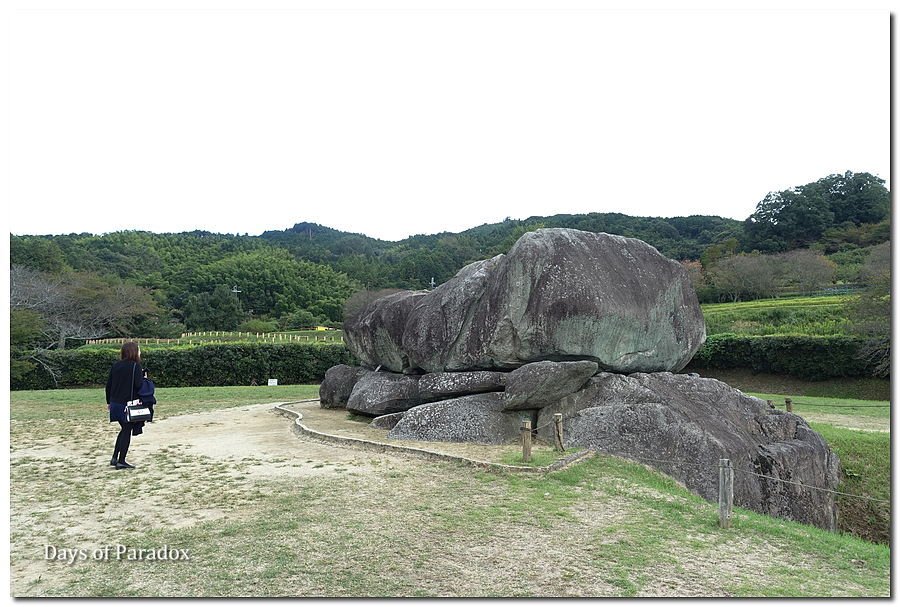 石室の長さは19.1m、玄室は高さ約4.7m、幅約3.5m、奥行き約7.6m。石の総重量は推定2,300t、古墳最大の巨岩である天井石は、南側が約77t、北側約64tもあるという。