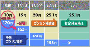 ちなみに、2021年1月30日の給油時は135円でした。