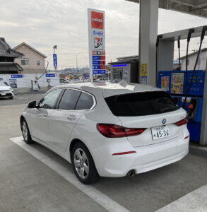 いつものセルフ給油スタンドで給油準備中。