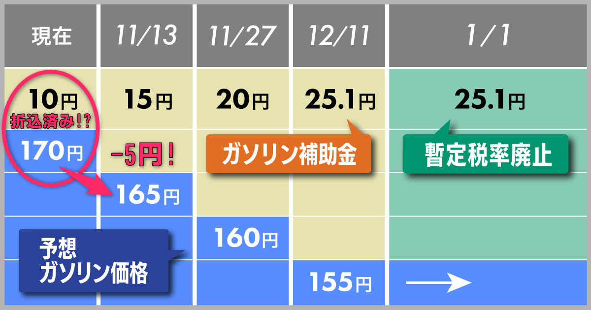 甘かった、下げ幅3段階なのは周知のとおりだったが、現行の価格にはすでに10円分の補助金が含まれていたのだった。すなわち昨日までの価格が25円下がることはないのだ。知らなかったのは自分だけ ?? 😖