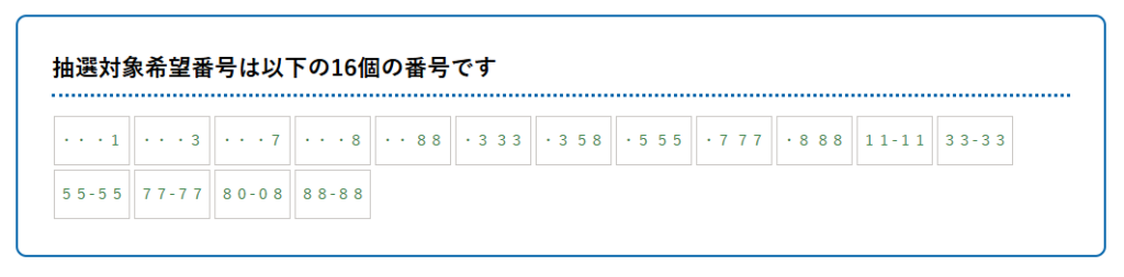 案内に従って居住地を選択すると、抽選対象の番号が表示される。