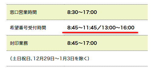希望番号の入手は平日に一日(近所なら半日)だけ休みが取れれば誰でも出来る