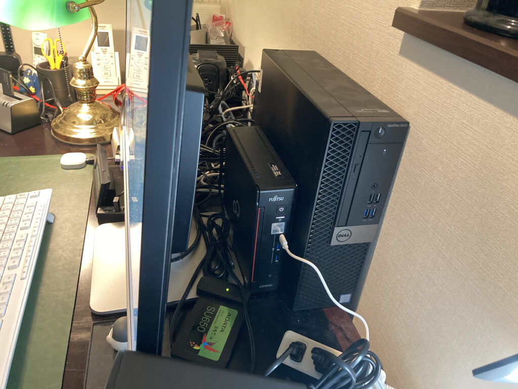 なんでそうなるかというと、PC本体をモニタ裏側に隠すように配置してるため。