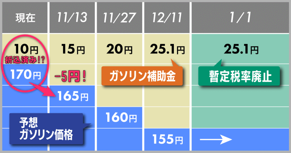 ガソリン価格が下がった…5円だけ😖