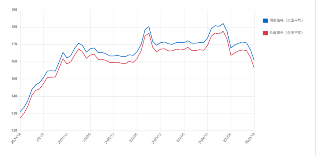 ガソリン価格定点観測-順調に低下中